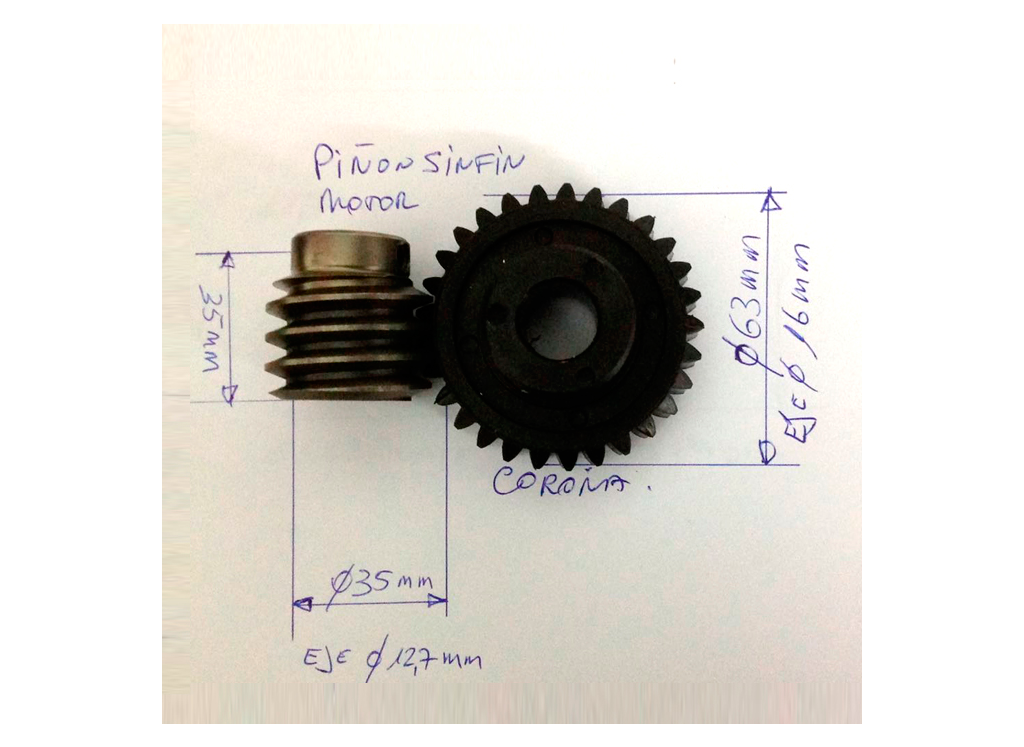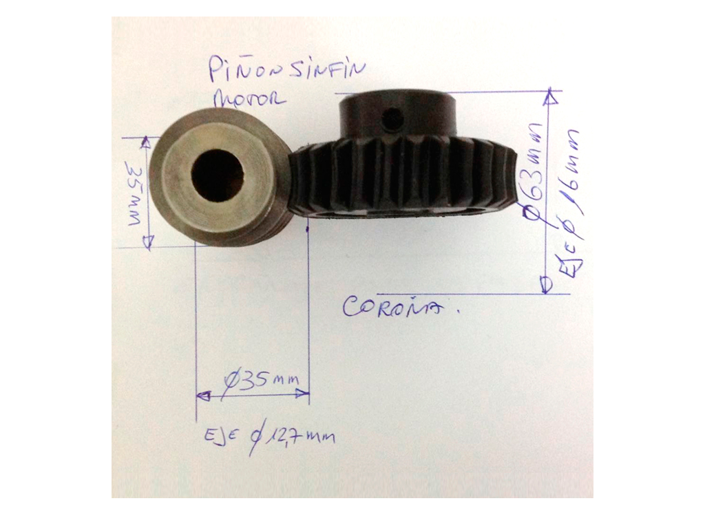 Piñon y corona de motor para spiedo